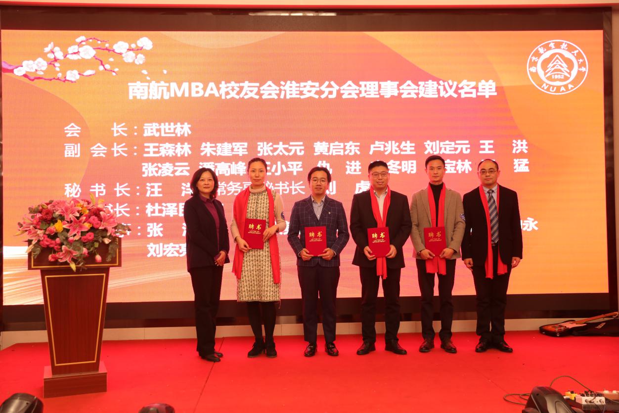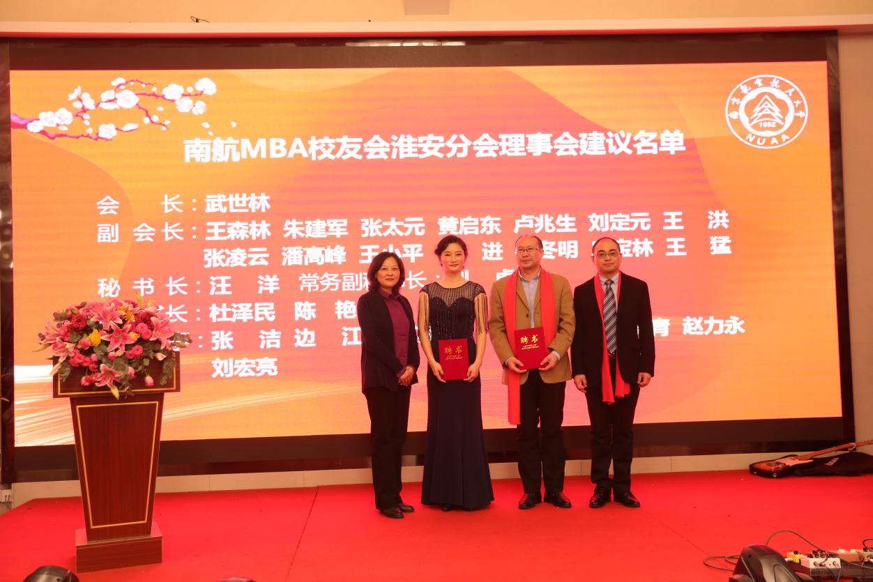 12月28日,南京航空航天大学MBA校友会淮安分会成立大会在淮安成功召开。淮安市教育局局长张元贵,淮安市人力资源与社会保障局副局长王乃岩,淮安市人才中心主任陈朝晖,淮安市就业管理中心副主任刘兆尚,淮安天士力药业副总经理杨国军,万香科技股份有限公司副总经理陈兆钢,淮安经济开发区热电有限公司常务副总经理张德善,淮安柴米河农业科技股份有限公司王其传,南航党政办/发展联络部副部长、校友总会副秘书长张钟勤,经济与管理学院副院长王子龙,党政办/发展联络部校友会办公室主任单晶,MBA教育中心执行主任、南航MBA校友会秘书长杜刚,MBA教育中心学生工作与职业发展办公室主管祝少琪,经管院校友工作秘书许志卓以及淮安各界200多位校友代表欢聚一堂,共同庆祝南航MBA校友会淮安分会的成立。