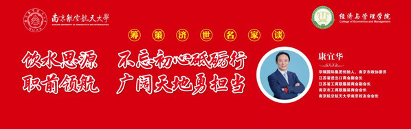 嘉宾简介:康宜华,1984年毕业于我校机械制造专业,后留管理工程系任教,1993年创办华瑞集团,并于2008年在美国上市,成为我国第一家在美国上市的服装企业,此外还担任南京市政协委员、江苏省进出口商会副会长、江苏省工商联服装商会副会长、南京市工商联服装商会会长、南京航空航天大学南京校友会会长。