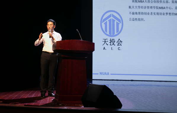 经济与管理学院副院长王子龙宣布南京航空航天大学MBA“天投会”成立,首任会长丁云峰详细介绍了“天投会”意义和作用。