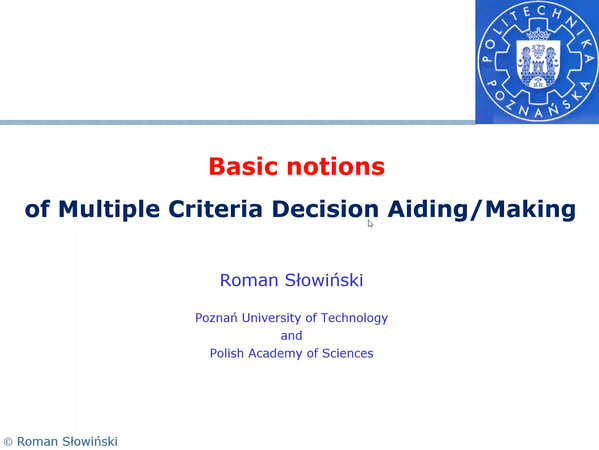 在本次短期课程中,Roman Słowiński具体授课内容包括:(1)多准则辅助决策的基本概念;(2)用(稳健)有序回归构造的加值函数进行多准则排序:UTA、UTA^GMS和GRIP方法;(3)利用排序关系进行多准则排序:ELECTREⅢ/Ⅳ法;(4)基于优势度的粗糙集多准则辅助决策方法。