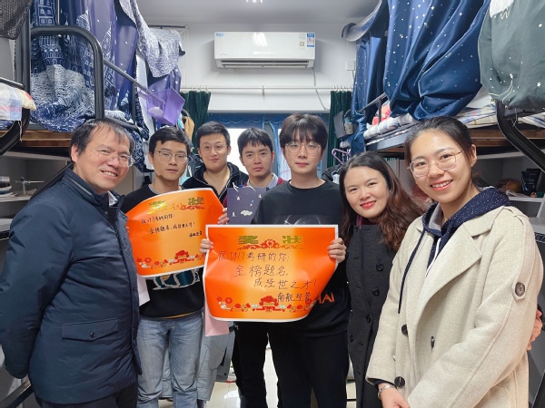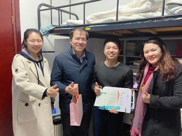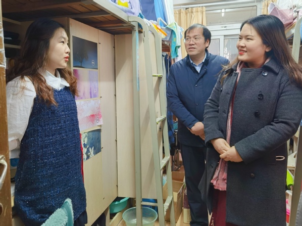 12月8日上午,经济与管理学院党委副书记涂志宏、副院长邓晶、2017级本科生辅导员胡心雨、朱一豪共同到宿舍看望考研学生,为各位学子带去一份温暖、增添一份动力。