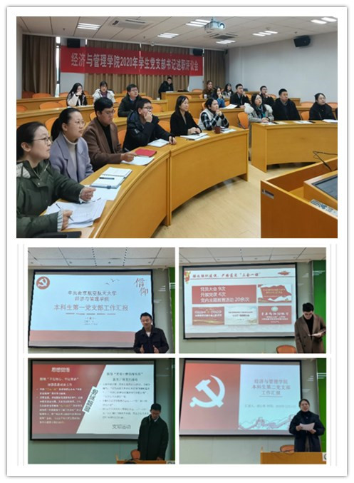 12月14日,经济与管理学院在学院A0304举行了2020年度学生党支部书记述职评议会,学院党委书记焦宏图、党委副书记涂志宏、党委委员罗正军、组织员袁颖、学生党总支成员以及学生党支部书记参加了活动。