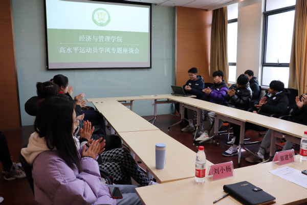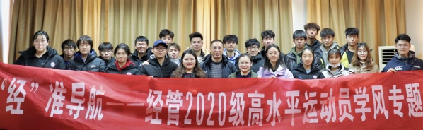 12月15日中午,“经”准导航——2020级高水平运动员学风专题座谈会于经济与管理学院510教室顺利开展。学院党委副书记涂志宏、团委书记刘小杨、体育部郁建华老师及2020全体高水平运动员参与座谈。