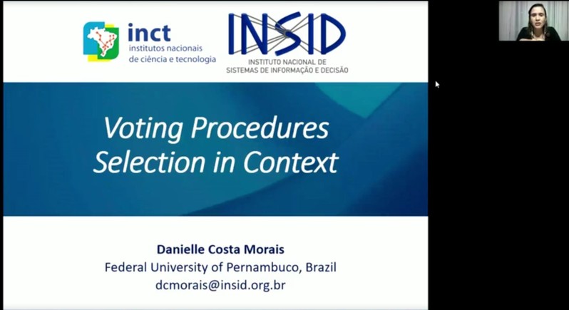 在本次学术报告中,Danielle Costa Morais首先介绍了投票程序(VP),可用于处理几个群决策问题;然后讨论了这些VP在商业组织中的应用,并介绍了一个框架,用于选择要在组织环境中使用的特定VP。最后根据VP的缺点和与业务战略保持一致的期望,探索了与VP选择有关的部分决策过程。