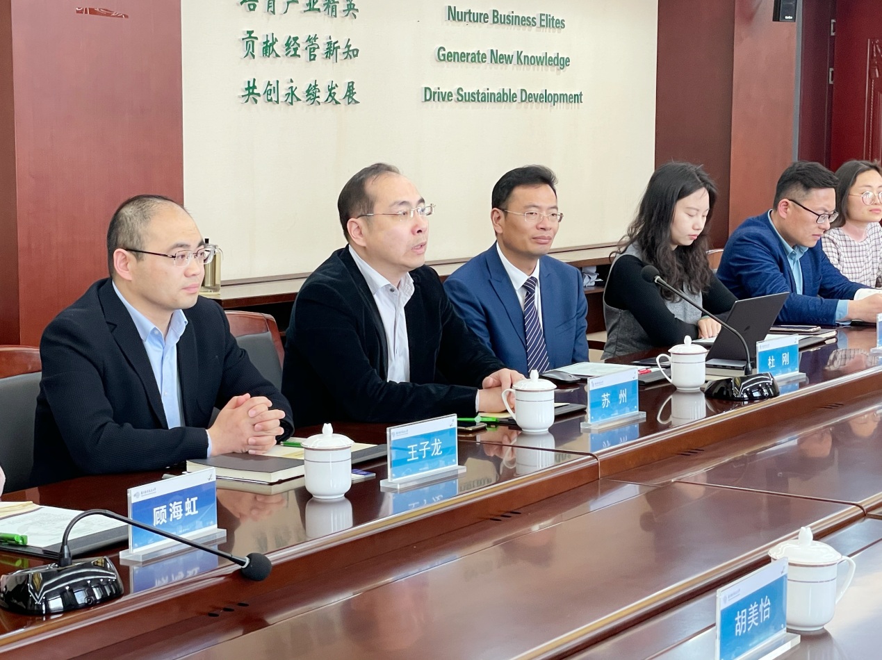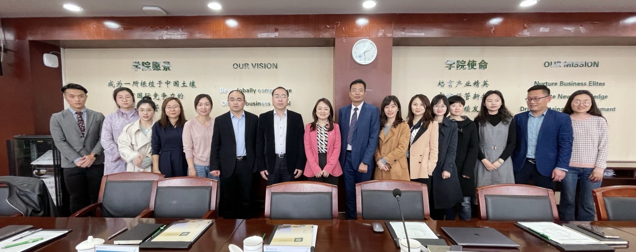 4月16日下午,四川大学商学院MBA教育中心主任李珊、招生品牌高级主管苟芳、品牌主管胡美怡、教务主管张倩、学生事务主管马力澜一行来我院调研。院党委书记苏州、副院长王子龙、教育培训中心执行主任杜刚以及中心所有老师陪同调研并座谈。