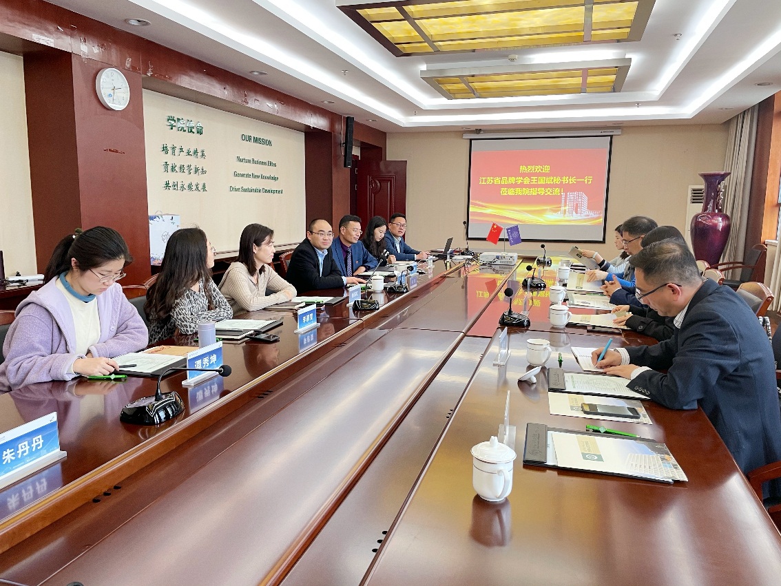4月21日下午,江苏省品牌学会秘书长王国斌、江苏品筑品牌管理机构总经理杨言乐、孔雀城住宅集团南京公司品牌总经理郑冉、江苏省品牌学会特色党建文化研究院执行院长景胜勇、徐文华、南京师范大学互联网品牌研究中心主任洪海江一行来我院开展产学研合作交流。学院副院长王子龙、教育培训中心执行主任杜刚以及中心老师陪同调研并座谈。