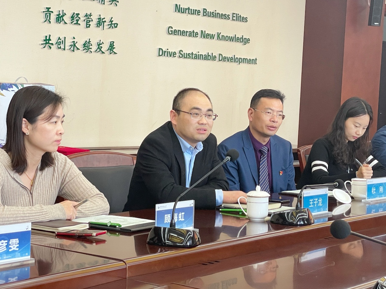 王子龙副院长首先对王国斌秘书长一行莅临南航经济与管理学院表示热烈欢迎,重点介绍了学院发展历程、学科专业、科研机构和师资队伍等。王子龙副院长表示,南航经管学院学科特色鲜明、实力雄厚,通过30多年的发展,已经形成以特色优势学科管理科学与工程为牵引、经济与工商管理学科有序发展的“一体两翼”格局,学科专业影响力不断扩大。在教育部第四轮学科评估中,经管学院管理科学与工程学科进入全国A-档行列,位居全国前5.3%,排位前10;工商管理学科进入全国B档行列,位居全国前20%,排位前50。依托学院工科背景,南航MBA项目一直秉承“凝聚特色、差异发展;瞄准需求、服务地方”的理念,以南京为中心,深耕江苏,服务长三角,辐射全国,品牌知名度和美誉度不断提升。