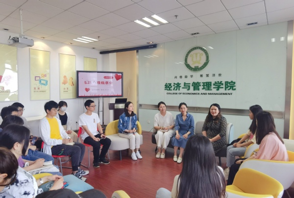 5月25日为大学生心理健康日,为积极回应学生对于心理主题教育活动的需求,全面提升大学生心理健康水平,扎实推进“我为群众办实事”,经济与管理学院于5月25日中午举办心理主题悦享会,学院党委副书记涂志宏、校心理健康教育中心教师陈瑜、学院心理辅导员胡心雨、博士生辅导员林小林以及各年级心理委员代表们参加此次活动。