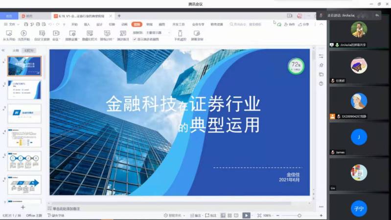 6月16日晚上,华创证券产业金融部执行总经理金佳佳应南京航空航天大学经济与管理学院信息管理与电子商务研究所的邀请,通过腾讯会议作了“证券行业的金融科技问题分析”报告,我院教授米传民以及诸多学生聆听了此次报告,本次报告由米传民主持。
