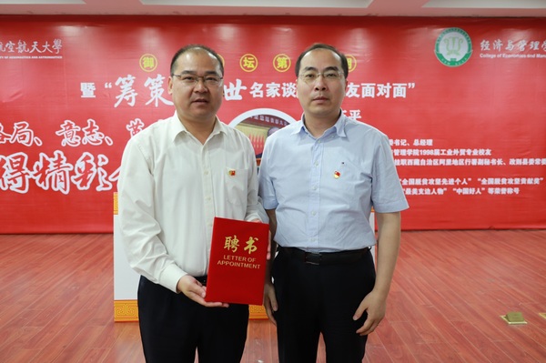 2021年6月13日,经济与管理学院开展第112期御道讲坛暨“筹策•济世名家谈——校友面对面”活动。我校1998届校友、“全国脱贫攻坚先进个人”段玉平来校作了题为《终身学习、艰苦奋斗,靠格局、意志、勤奋赢得人生精彩》的讲座,经济与管理党委书记苏州,党委副书记涂志宏及我校两百余名师生参加了此次活动,活动由涂志宏主持。