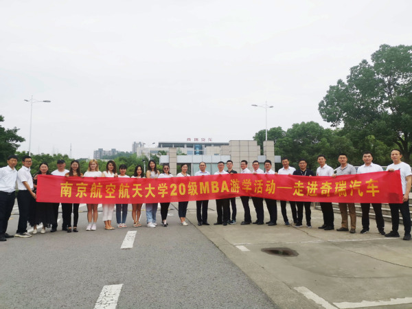 2021年6月20日,南京航空航天大学MBA教育中心2020级国际商务班走进奇瑞汽车,举行了“致敬中国智造,领略科技魅力”的主题研学活动。奇瑞大学执行校长毕全国、经管学院副院长王子龙教授、班主任顾海虹老师带队参访。