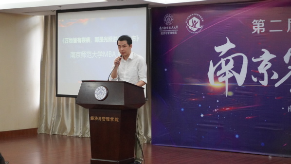 第二位演讲嘉宾是来自南京邮电大学的MBA学员唐怀坤,他分享的主题是《人生的三层境界:自我、无我、超我》,读书期间他发表了70余篇文章,路漫漫其修远兮,吾将上下而求索,人生的境界是不断地挑战自我,不断提升!