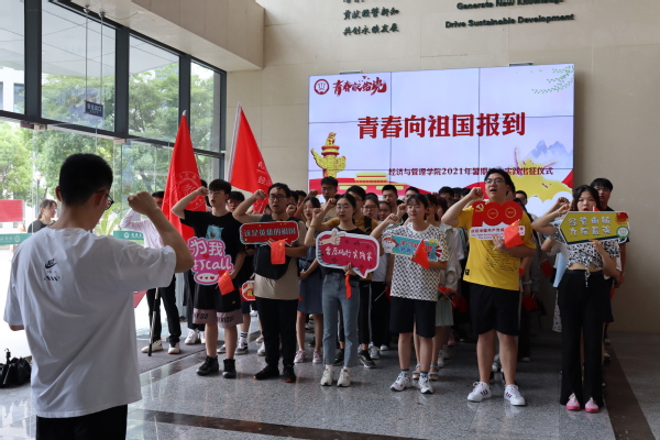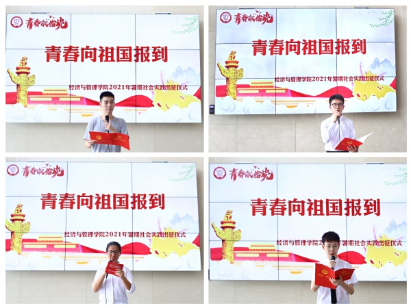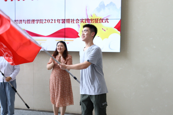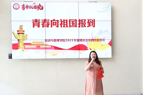 6月30日中午,经济与管理学院“青春向祖国报到”2021年暑期社会实践出征仪式在经济与管理学院一楼大厅顺利举办。36支暑期社会实践团队的近100名代表用经管学子朝气蓬勃、勇于担当、执于梦想的气概向祖国报到,向党的百年诞辰表白初心。院党委副书记涂志宏,院团委书记刘小杨出席此次出征仪式。