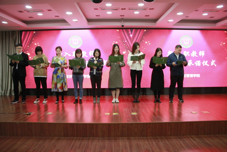 大会伊始,是新教职工的入职仪式。苏州代表学院全体教职工对新学期入职的老师表示热烈的欢迎。新教工们分别做了简短的自我介绍之后,在工商系新教师王筱纶的领誓下,手捧“师德师风承诺书”,从坚定政治方向、自觉爱国守法、传播优秀文化、潜心教书育人、关心爱护学生、坚持言行雅正、遵守学术规范、秉持公平诚信、坚守廉洁自律、积极奉献社会等十个方面庄重地完成了入职宣誓,正式开启高校教师的职业生涯。