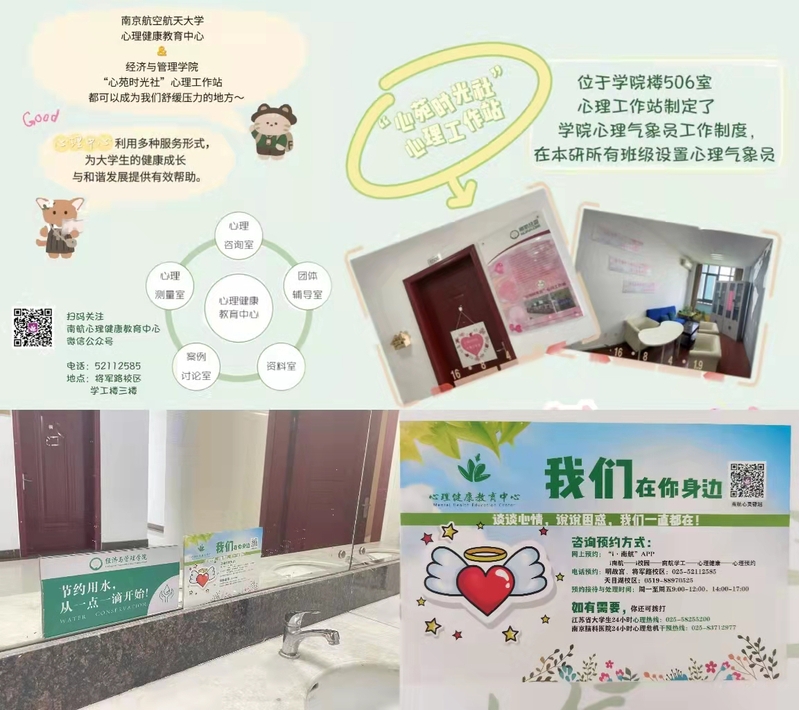 另外,依托我院的“心苑时光社”心理工作站的建设,在学院楼506室开设心灵图书角和解压室,作为面向学生的“心灵驿站”,给学生提供释放压力、诉说心事的安全空间。同时,学院积极做好心理咨询的宣传工作,在学生宿舍、办公场所等醒目处都张贴心理咨询画报,鼓励学生在遇到心理压力时及时需求帮助。设置心理委员深入学生集体,定期邀请校心理中心老师为心理委员们讲解心理咨询相关的知识和沟通技巧,在班级组织心理团辅活动。