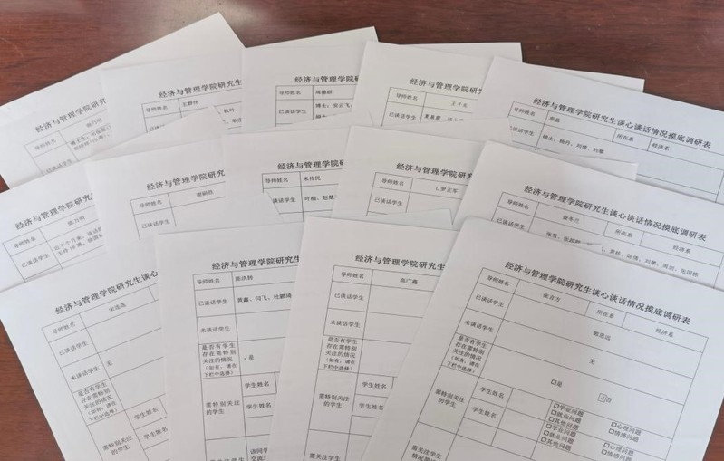 11月1日,学校下发了《关于开展第七期研究生“谈心谈话关爱月”专项活动的通知》。经济与管理学院党委高度重视,把学生心理工作摆在重要位置,院领导、研究生导师、专兼职研究生辅导员、学生干部等全员参与,多措并举,将各项要求落细落小落到实处。