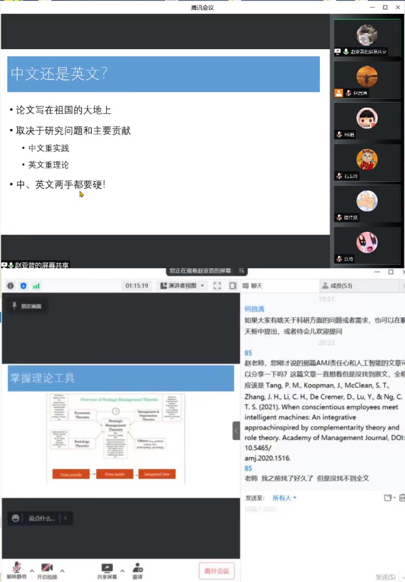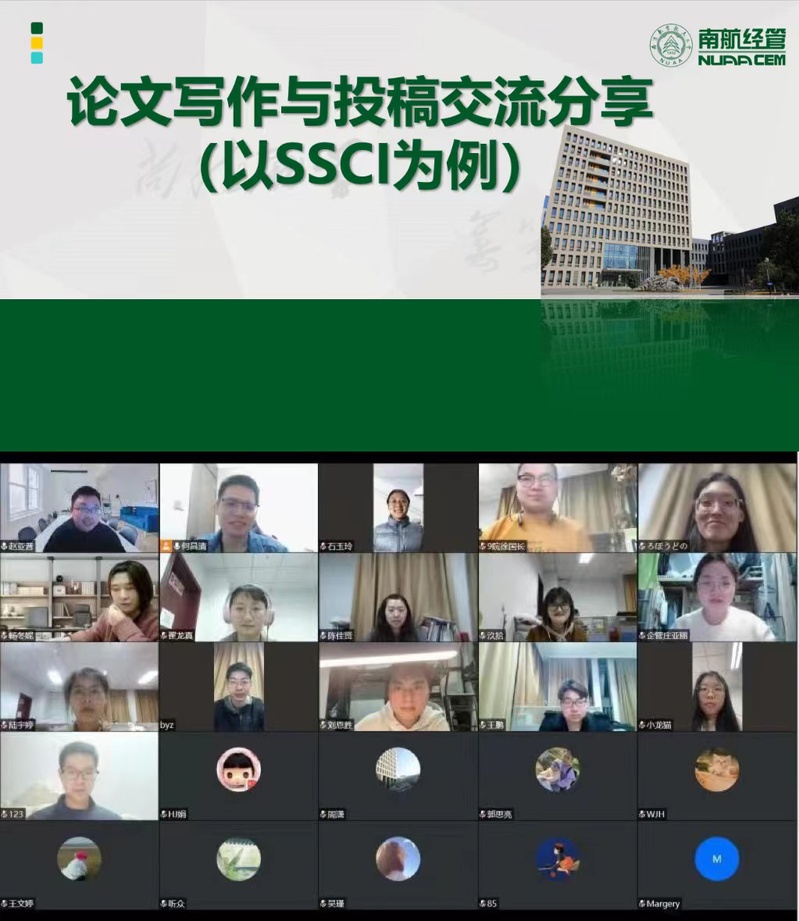 为提升研究生对英文论文写作与投稿的认知,4月13日晚上,我院工商管理系研究所组织开展学术论文写作与投稿分享交流会。会议由工商管理系教师及研究生兼职辅导员赵亚普主持,共有50余位研究生参与。