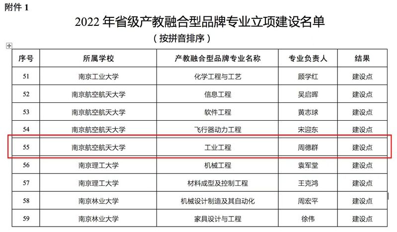 2022年5月5日,江苏省教育厅公布了2022年省级产教融合型品牌专业评审结果,我院工业工程专业成功入选2022省级产教融合型品牌专业建设点,成为全校4个获批建设点的专业之一。