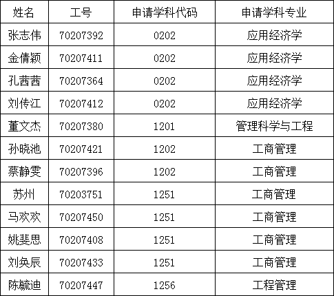 根据南京航空航天大学关于印发《聘任硕士生指导教师实施办法》的通知[校研字〔2021〕21号],经教师个人申请,学院学位评定分委员会讨论通过以下硕士生导师资格名单。公示期:2022年6月17日—2022年6月23日。公示期内如有异议,请以书面形式向学院研究生教学办反映。