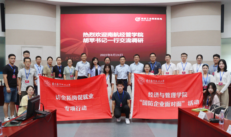 为进一步加强产教协同,深化校企供需对接,密切与国防单位联系,8月24日,经济与管理学院党委副书记胡苹一行赴航空工业南京机电液压工程研究中心参观交流,学院管工系副主任何沙玮,经济系副主任王长波,管工系青年教师、兼职辅导员高广鑫,全体辅导员及本、硕、博各年级学生代表共同参加活动。