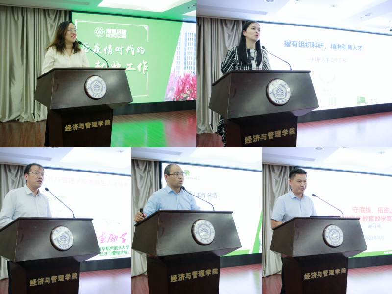 学院分管院领导分别就本科教学规范与审核评估,研究生教育教学质量,学生就业工作,科研和引才以及MBA教育中心等工作分别进行了汇报。