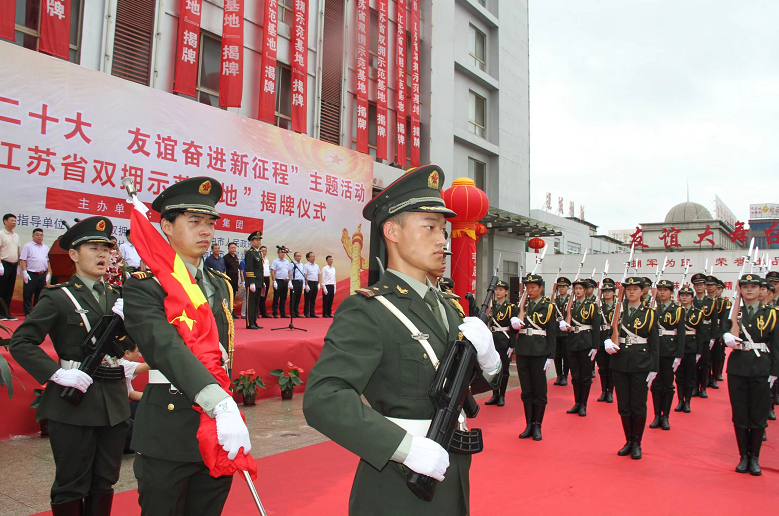 友谊国际集团被江苏省双拥办授予江苏省双拥示范基地,中国人民解放军仪仗大队专程为本次活动发来祝贺信。