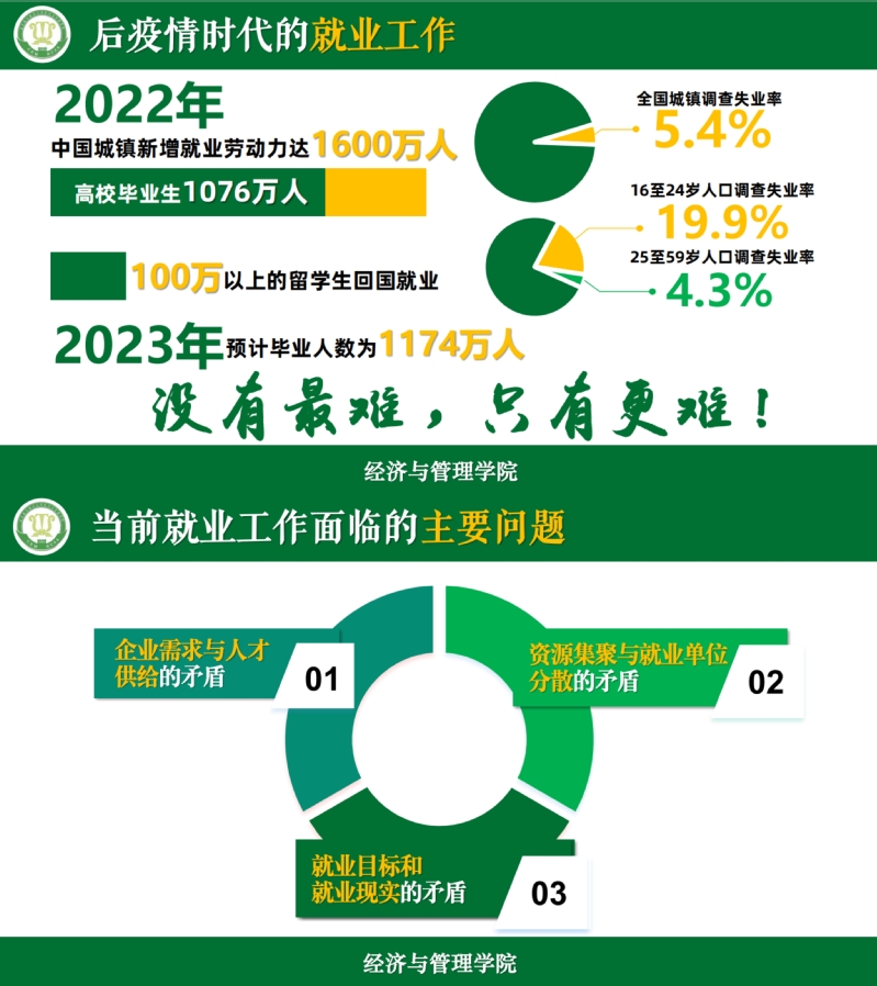 会上,胡苹首先介绍了2023届学院研究生毕业生基本生源情况,随后通报了学院9月份的就业数据,并结合全校数据做了横向对比。结合当前就业形势,她为同学们进行了详细分析,指出面临更加严峻的就业形势与压力,同学们要勇于直面阶段性就业困难,增强就业信心,在秋招高峰时期争取找到一份满意的工作。