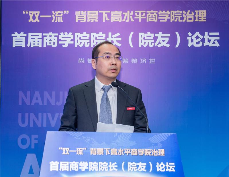 苏州代表学院致辞,简要回顾了经管学院发展历程和办学成就,向广大校友长期以来关心支持学院发展表示衷心感谢。他表示,校友和母校母院不仅是情感共同体、更是发展共同体。学院培养的学界精英中已走出了数十位国内经济与管理学院的院长、副院长,为院长校友们搭建一个可持续的交流平台,启发思路、借鉴经验、共享资源、互助发展,是学院发起首届商学院院长(院友)论坛的初心和使命;“双一流”背景下,大学治理、学院治理都已进入一个新的时期,对于学院治理,经济管理学院应该有更强烈的主体意识,应该比其他学院有更多的思考和实践,应共同为中国式现代化不断贡献商学院智慧和经管方案。