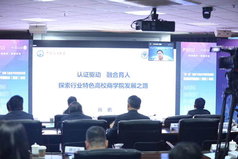 中国石油大学(华东)党委常委、副校长周鹏作了题为“认证驱动、融合育人,探索行业特色高校商学院发展之路”的主旨报告。他认为,商学院要以国际认证、学科专业评估为重要驱动,推进学科专业一体化建设,将学科、科研优势转化为育人优势,加强学科、产教、科教融合,提升融合育人能力和办学影响力。