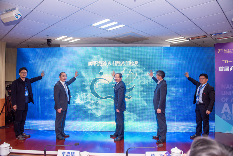 单忠德、苏州、周德群和江苏科技大学经济管理学院原院长苏翔、南京师范大学商学院院长白俊红共同启动首届商学院院长(院友)论坛,并发布商学院院长(院友)论坛专属标识。
