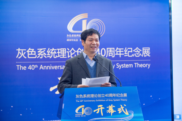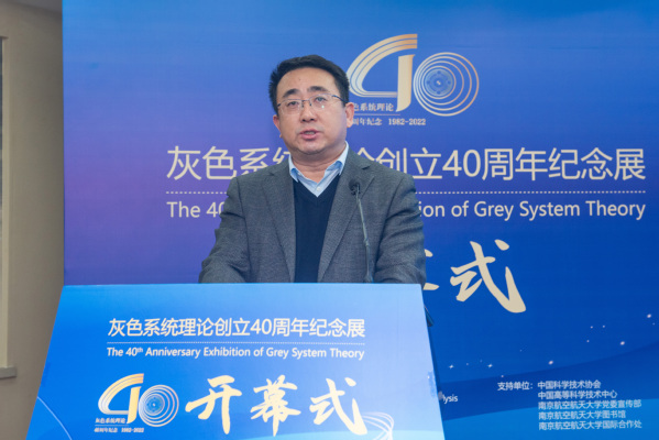 单忠德代表学校对莅临开幕式的领导嘉宾表示诚挚欢迎,对给予南航事业发展关心支持的社会各界表示衷心感谢。他指出,党的二十大报告强调加强基础研究、增强自主创新能力对我国实现高水平科技自立自强的重要意义,南航始终坚持“为党育英才,为国铸重器”的初心使命,大力支持本土原创灰色系统理论的发展,为发展中国原创学说、传播中国学术声音贡献了南航智慧和南航力量。希望以此次纪念展为契机,进一步深化交流合作,以更加开放的视野研讨新时代灰色系统理论,凝聚智慧力量,推动创新发展,使中国学者原创的灰色系统理论不断发展壮大,让中国原创学说传播全球,更好地“为党育英才、为国铸重器”,更好地服务社会、报效祖国,携手为构建人类命运共同体作出新贡献、谱写新篇章。