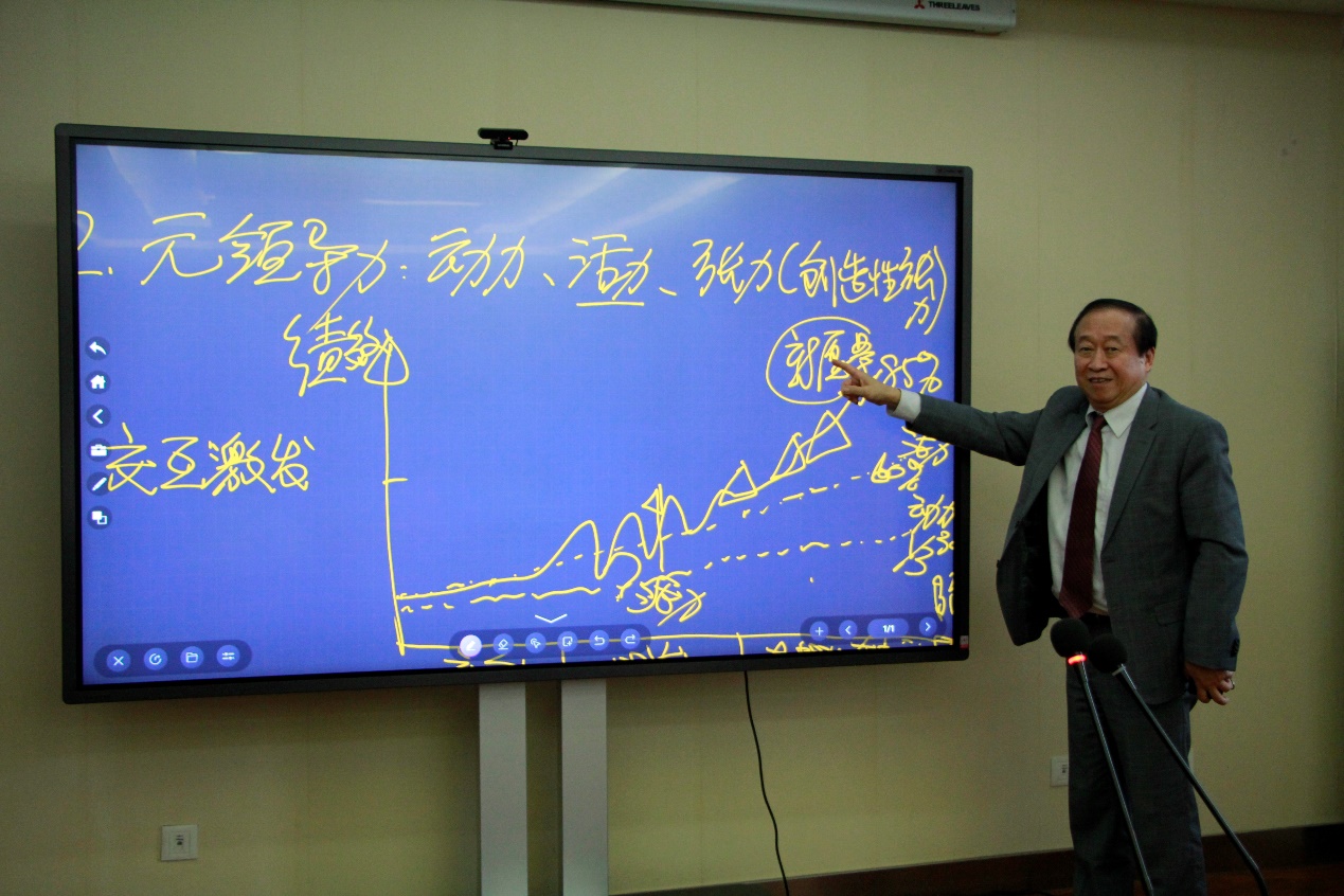 3月9日下午,浙江大学文科资深教授、浙江省特级专家、浙江大学管理学院博士生导师、国际丝路创业教育联盟理事长、AMBA&BGA国际认证协会中国顾问与中国区总协调人王重鸣教授应邀来我院指导BGA认证工作并作“管理研究的可续发展新思路:从元领导力到五力管理”的专题讲座。出席本次交流座谈会的有院党委书记苏州,院长周德群,党委副书记胡苹,副院长王子龙,院长助理谢嗣胜、周志鹏,MBA教育中心执行主任杜刚,学院教师代表以及MBA教育中心老师等。