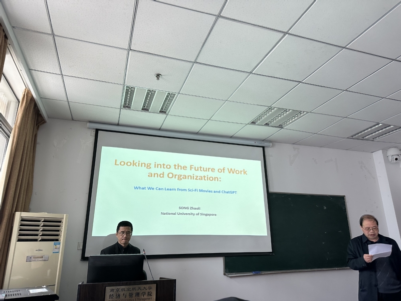 3月29日,应经济与管理学院人力资源管理研究所、江苏省人力资源发展研究基地和中国员工关系管理研究省优秀创新团队邀请,新加坡国立大学商学院教授宋照礼在学院704会议室为我院师生作了题为“Looking into the future: What can we learn from Sci-Fi movies and ChatGPT”的精彩学术报告。本次讲座由教授胡恩华主持,相关教师以及博士生和硕士生参加了这次专题讲座。