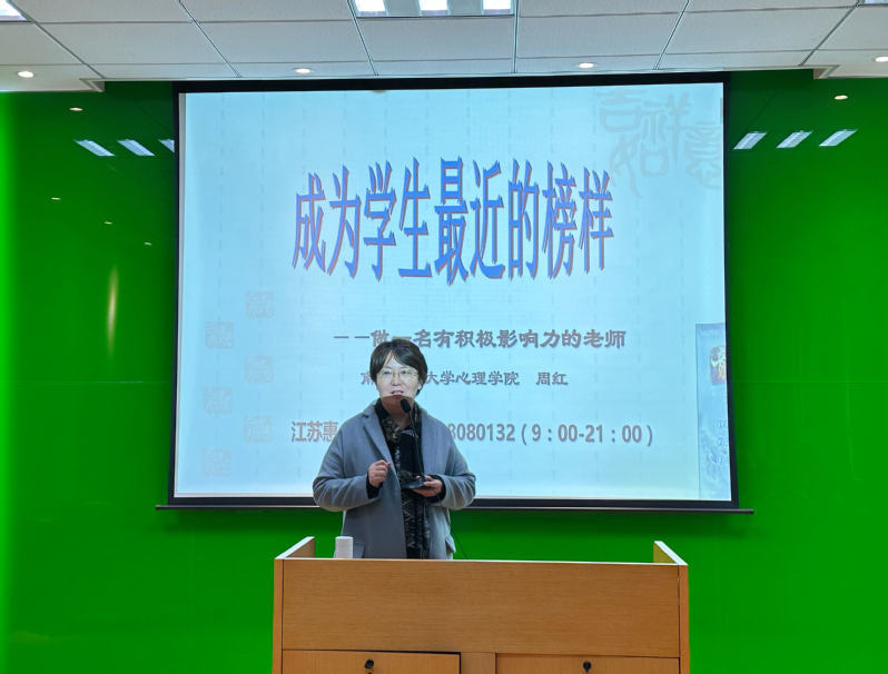 为更好地贯彻落实学校“谈心谈话关爱月”工作要求,3月23日下午,经济与管理学院邀请南京师范大学心理学院党委书记周红老师做题为“做一名有积极影响力的老师”专题心理讲座。学院党委书记苏州、党委副书记胡苹、三十余位青年教师和全体专兼职辅导员到场参加,讲座由学院党委副书记胡苹主持。