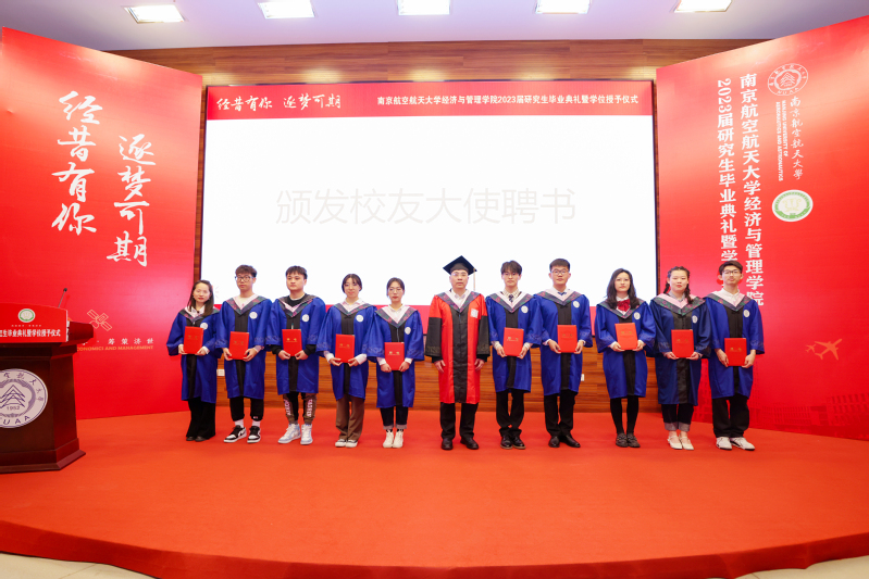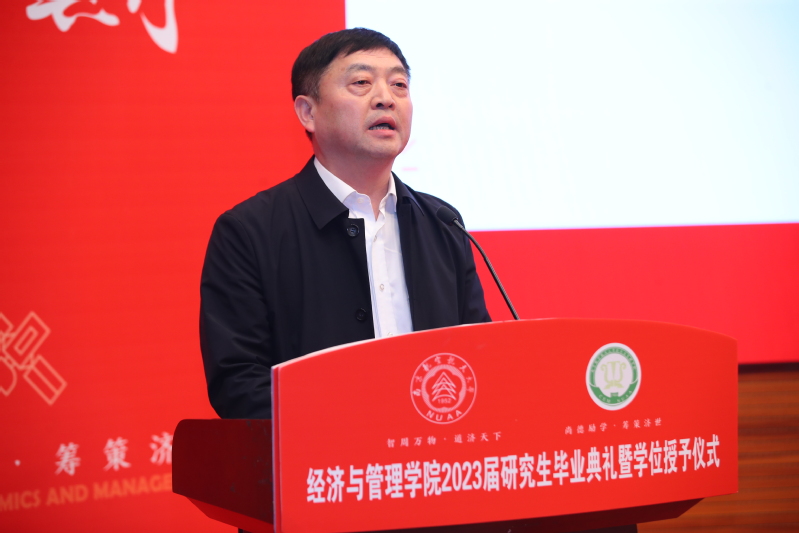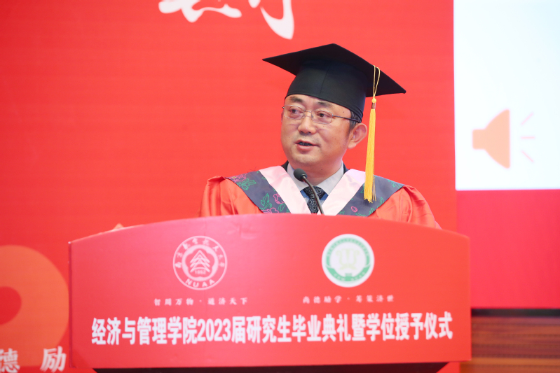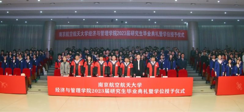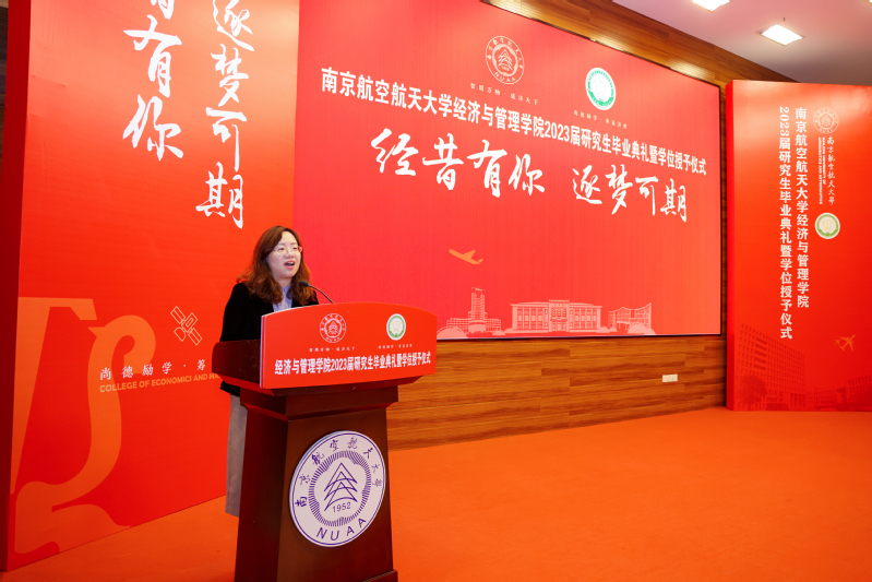 4月7日下午,经济与管理学院2023届研究生毕业典礼暨学位授予仪式在将军路校区一号楼报告厅举行。院党委书记苏州,院长周德群,副院长王子龙、谢乃明、查冬兰,院党委副书记胡苹,院学位评定委员会委员,导师代表,毕业生亲友出席典礼,与2023届全体毕业生共同分享这一难忘的美好时刻。典礼由院党委副书记胡苹主持。
