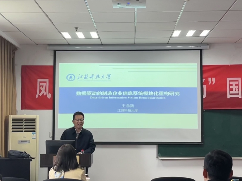 4月24日下午,江苏科技大学经济管理学院院长王念新教授受学院智能决策与风险分析研究所邀请,在南航将军路校区经管学院704会议室作题为“数据驱动的制造企业信息系统模块化重构研究”的讲座。我院教授徐海燕、副教授何沙玮、副教授高广鑫等教师及部分硕、博研究生现场聆听了王院长的报告分享,本次学术报告由徐海燕教授主持。