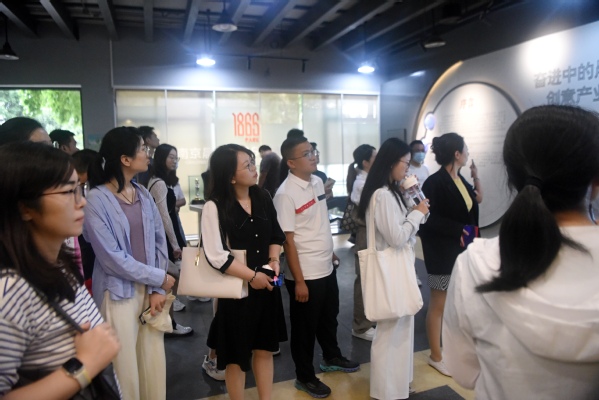 孟凡刚部长带领学员们参观了园区展示大厅,向学员们详细介绍了公司的发展进程并用形象的沙盘向我们展示了当下创意产业园的布局情况,园区占地21万平方米,其中聚集9栋清代建筑、23栋民国建筑、26栋新中国成立后建筑,集中反映了中国工业建筑的历史演变,是“全国重点文物保护单位”和“国家工业遗产”。