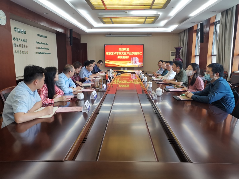 6月6日下午,南京艺术学院文化产业学院院长王晨一行来访我院,经济与管理学院院长王群伟,党委副书记胡苹,副院长邓晶、王子龙、谢乃明、查冬兰,院长助理欧阳林寒、周志鹏等参加调研座谈会。