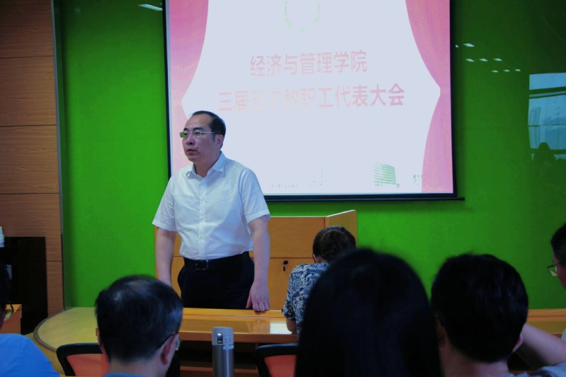 6月19日上午,经济与管理学院在702会议室召开三届五次教职工代表大会,审议学院《2023-2026年岗位聘任方案》。党委书记苏州,院长王群伟,党委副书记胡苹,副院长谢乃明、查冬兰、周志鹏及学院教职工代表参加会议。会议由学院党委书记苏州主持。