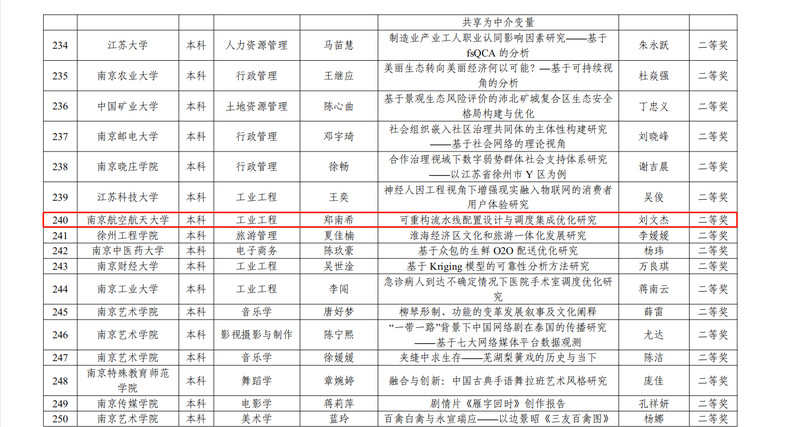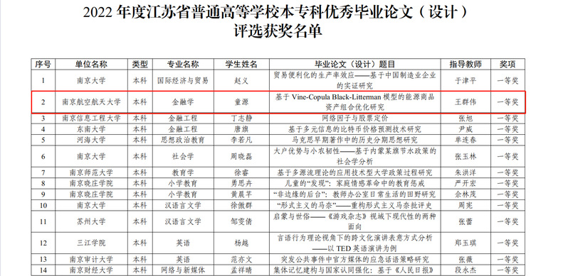 近日,江苏省教育厅公布了2022年江苏省普通高校本专科优秀毕业设计(论文)评选结果,南京航空航天大学共获优秀毕业设计(论文)一等奖2项、二等奖3项、三等奖12项、团队奖2项。其中,我院王群伟教授指导的本科生童源荣获一等奖、刘文杰教授指导的本科生郑南希荣获二等奖。