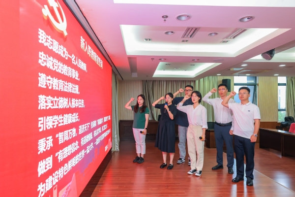 在新进教职工入职仪式上,李昊、高园园、任亚楠、蔡文武、陈思华、胡宇昕六位老师在全院老师的见证下庄严宣誓:将忠诚党的教育事业,落实立德树人根本任务,秉承“智周万物,道济天下”校训和“尚德励学,筹策济世”院训,做“四有”好老师,为建设特色鲜明的世界一流大学、一流经济与管理学院而努力奋斗!
