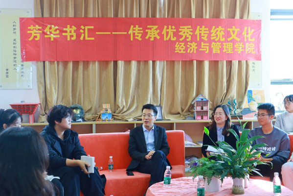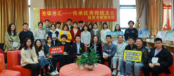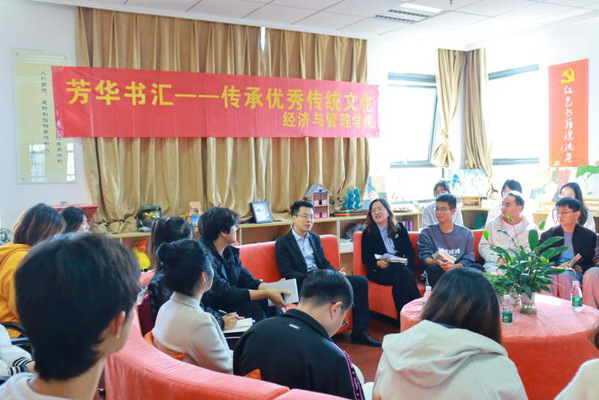 中华优秀传统文化是中华文明的智慧结晶和精华所在,是中华民族的根和魂,是我们在世界文化激荡中站稳脚跟的根基。为认真学习领会习近平总书记在全国宣传思想文化工作会议精神,11月7日,经济与管理学院依托“芳华书汇”读书微平台,在学院512图书馆开展读书分享会,邀请马克思主义学院党委书记徐川分享其代表作《道不远人——走近传统文化》。学院党委副书记胡苹、学院2022-2023学年本硕博各类奖学金获得者代表、图书馆入馆次数前五等学生参与本次读书分享会。