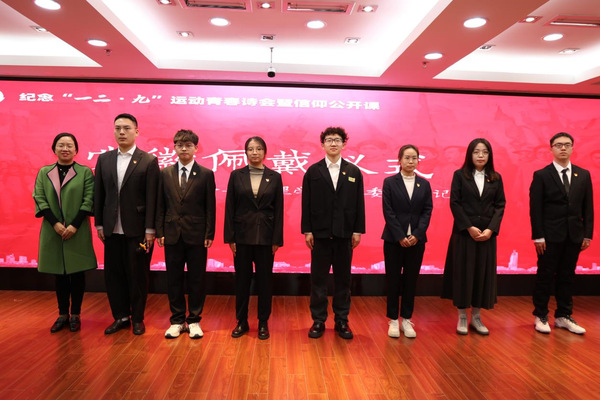 在纪念“一二·九”运动88周年之际,为增强青年学生爱国主义信念,经济与管理学院举办“思想旗帜领航向,青春之声颂华章”纪念“一二·九”运动青春诗会暨信仰公开课。经济与管理学院党委副书记胡苹、校团委副书记王洋、各年级辅导员和团学骨干等近200人参与此次活动。活动由退休教师江可申、本科生张瀚茹主持。
