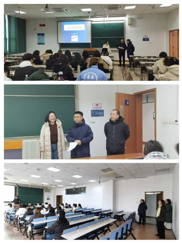 上午7点50,学院领导走进“应用统计学”、“现代企业经营决策模拟”以及“会计信息系统”等课堂,第一时间了解教师课前准备及学生出勤情况;随后,系主任、教学指导小组专家以及教学办人员对首日开设的22门课程进行了全覆盖听课,整体教学安排组织到位,课堂教学秩序良好,教师备课充分,学生到课情况较好,课堂学习气氛浓厚。