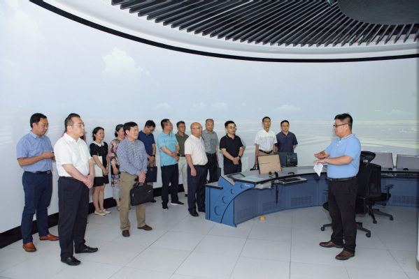 学习会首先来到民航学院“360度全景塔台管制模拟实验室”进行现场研学。