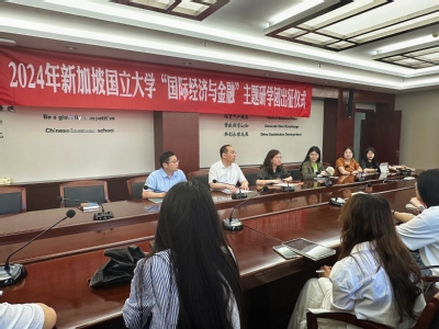 欧阳林寒介绍了研学活动设立的背景、研学团成员构成和课程体系。新加坡国立大学是世界一流大学,研学活动能给学生带来创新的学习体验,拓展思维方法。本次参与的学生共15人,分别来自大一至大三不同年级、不同专业,研学内容以金融类课程授课为主,结合了企业实地参观、院校交流等环节。