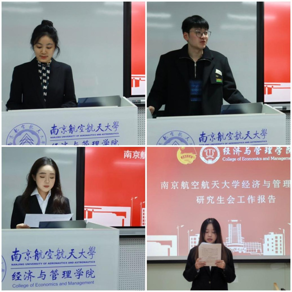 2024年11月30日,南京航空航天大学经济与管理学院第四次学生代表大会、第四次研究生代表大会在将军路校区学院A0308报告厅成功召开。学院党委副书记胡苹、代团委书记朱一豪、校研究生会主席李时铭、校学生会主席团成员张瀚茹、47位本科生代表和28位研究生代表共同出席了大会开幕式。