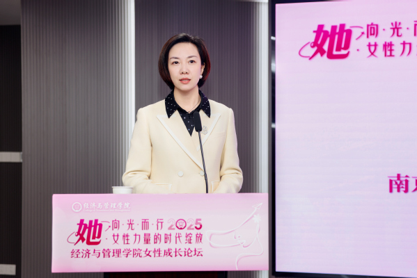 为了庆祝第115个三八国际妇女节,助力新时代女性健康成长,3月7日,经济与管理学院在A0405报告厅举办“她·向光而行”女性成长论坛。学院党委副书记胡苹、南京摩尔猫猫电子商务有限公司总经理李漪阳、经济与管理学院教授马静、南京师范大学心理学院副教授纪婷婷等嘉宾及近百名师生代表齐聚一堂,共话女性成长与时代担当。