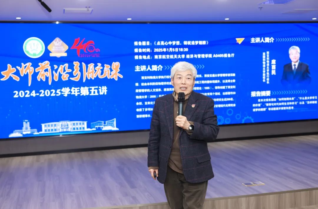 2025年1月5日晚,“大师前沿引航课”第五讲在南京航空航天大学经济与管理学院A0405报告厅举行。本期邀请到西安交通大学原副校长、西交利物浦大学执行校长、英国利物浦大学副校长席酉民教授授课,题目为《点亮心中梦想,铸就追梦翅膀》。经济与管理学院150余名师生参加,报告内容在学院视频号同步直播。经济与管理学院党委书记苏州主持报告会。