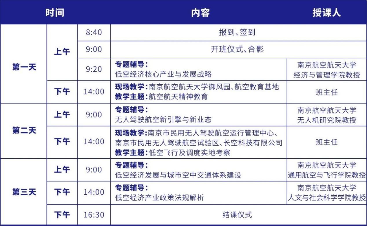 低空经济是全球竞逐的战略新兴产业,也是新质生产力的典型业态。党的二十届三中全会提出“发展通用航空和低空经济”。已有20多个省、市、自治区将低空经济写入政府工作报告,100余个地级市部署发展低空经济。 南京航空航天大学秉承“为党育英才,为国铸重器”的使命,坚持航空、航天、民航“三航”办学特色,依托无人机、直升机、发动机“三机”学科优势,牵头成立了全国首个低空经济创新发展联盟,构建了“政、端、网、云、用”五位一体的低空经济创新发展生态体系和赋能模式。 南京航空航天大学经济与管理院举办低空经济产业及应用研修班,旨在依托学校学科优势和产业链资源储备,以企业家工作为抓手,做深做实企业服务工作,推进产业链融通,助力低空经济产业高质量发展。
